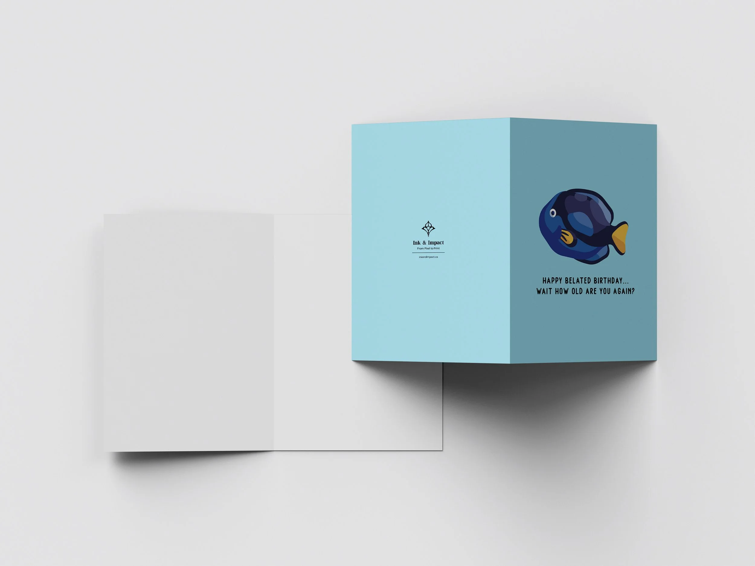 Did you forget someone’s birthday? No worries! Send this playful "belated birthday" card featuring a cute Dory-like fish and a humorous message that will bring a smile to their face—no matter how late it is!