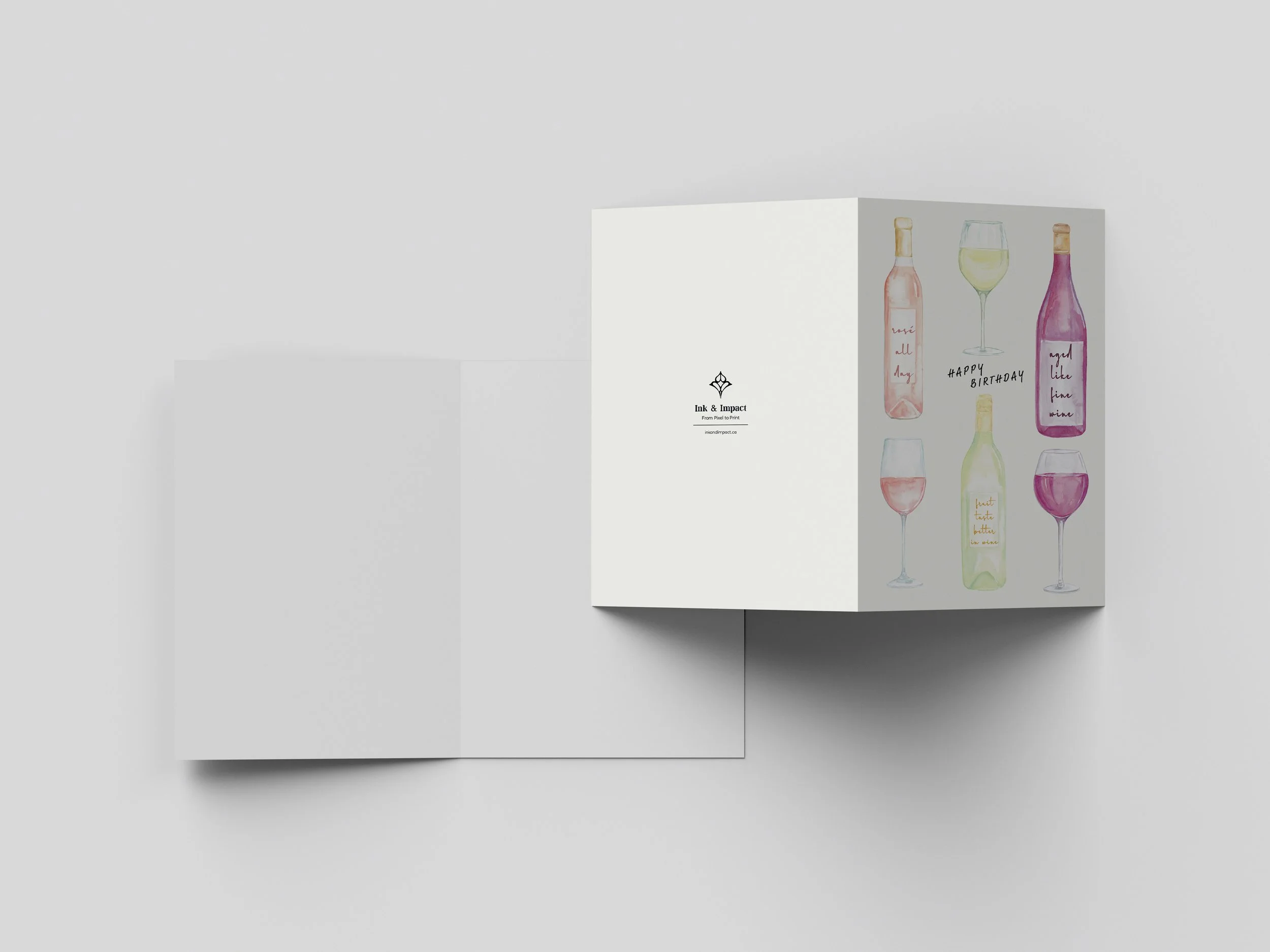 Celebrate in style with this fun and classy birthday card featuring watercolor illustrations of wine bottles and glasses. It’s the perfect card for wine lovers, adding a touch of sophistication and joy to any birthday celebration.